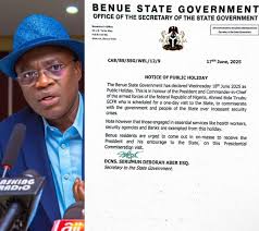 The Benue State Government has declared today, Wednesday, June 18, 2025, a public holiday in honour…